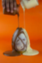 Casquinha mista com chocolate ao leite e branco. Uma banda recheada com brigadeiro branco e outra com brigadeiro ao leite. Embrulhado em uma linda lata presenteável.